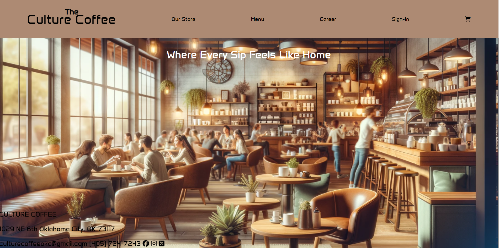 Responsive web interface built with HTML, CSS, and JavaScript that presents The Culture Coffee's menu with interactive item selection, cart management, and subtle animations to mirror the feel of a modern coffee shop.